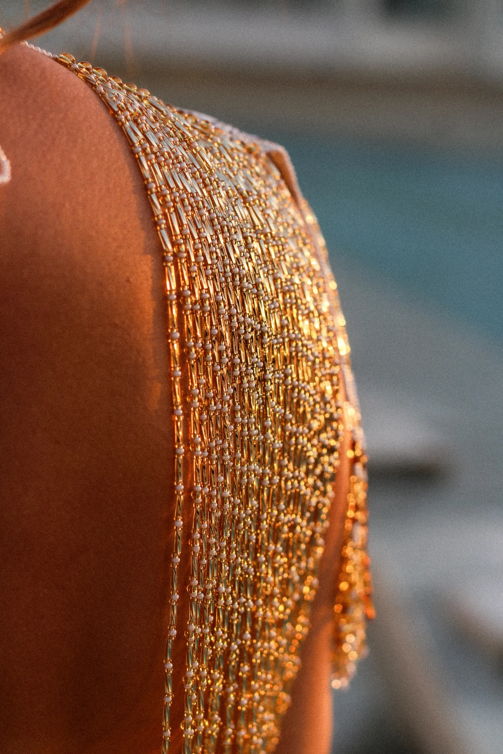 The neckpiece, hand-beaded by the Kamëntsá community in Colombia, took months to create.